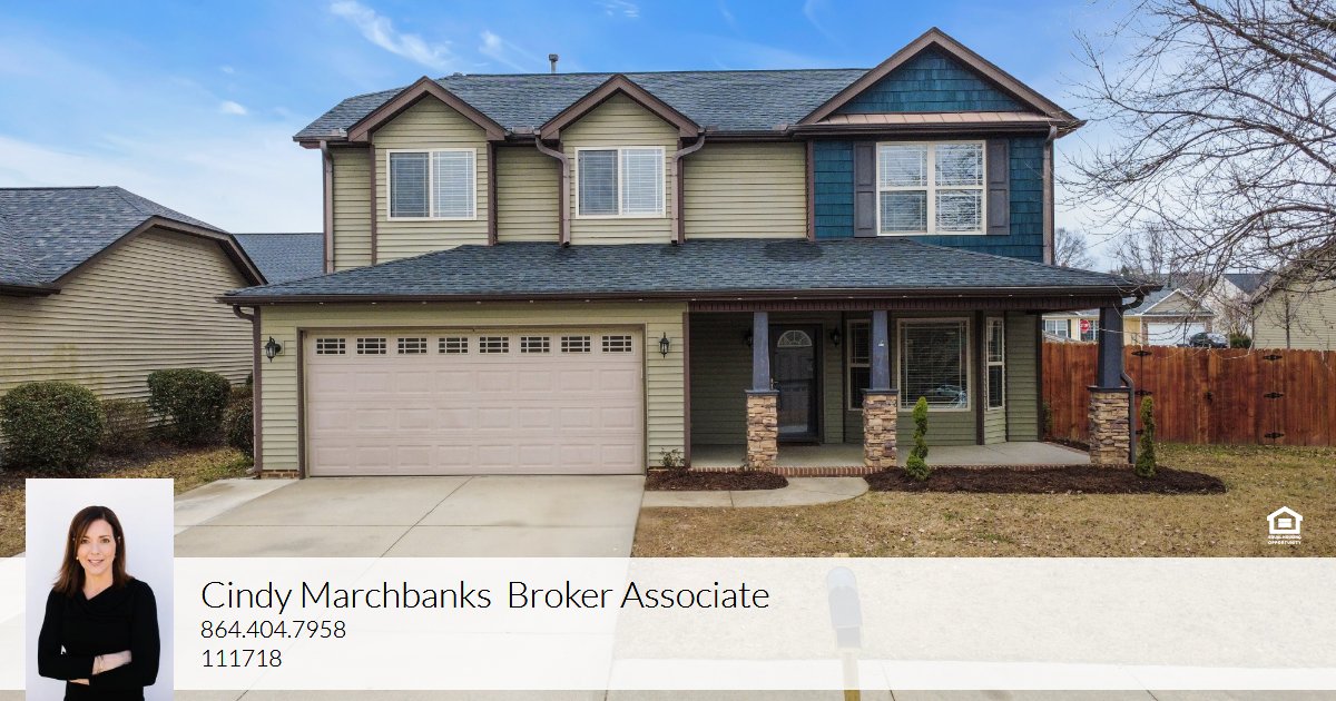 Located in the desirable Chartwell Estates neighborhood of Greer, this well-maintained and thoughtfully updated home is zoned for Riverside Middle and High Schools and offers convenient access to I-85, GSP Airport, the charming downtown Greer, and a wide variety of shopping and dining. This community is friendly and walkable, featuring sidewalks throughout, a grand clubhouse, and neighborhood pool. An expansive, covered front porch welcomes you. Inside, the updated kitchen (2022) features quartz countertops with a waterfall edge, custom tile backsplash, painted cabinetry, updated lighting, pantry, and quality appliances including a Bosch dishwasher, induction cooktop with self-cleaning convection oven, and microwave convection combo. Arched openings and rounded drywall corners add subtle architectural detail throughout the main living spaces. The spacious living room includes a gas log fireplace with a traditional mantel, and the formal dining room is highlighted by a bright, bay window. Upstairs features a huge laundry room, an updated hall bathroom with a new vanity, and a spacious primary suite with a double sink vanity, garden tub, and large walk-in closet. Outdoor living is enhanced by an extended patio across the back of the home, while the corner lot and fully fenced backyard provide added privacy. Other updates include LVP throughout main level (2022), roof replacement in 2021, new HVAC A/C condenser unit (2025), fresh interior paint (2025), all new carpet (2025), new Andersen front storm door (2025), extended concrete patio (2022), extended driveway width for extra parking (2022), two commodes replaced (2025), and new garage door motor (2025). This move-in-ready home offers solid updates, functional spaces, and a highly convenient Greer location within an established neighborhood.